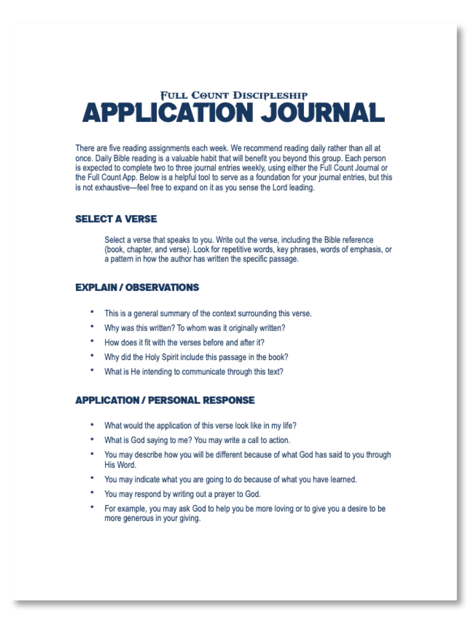 “the Full count discipleship journal is a comprehensive RESOURCE for every group. Whether this is your first discipleship group, or you’ve been in many, you can scale this cirriculum to fit your needs PERFECTLY.